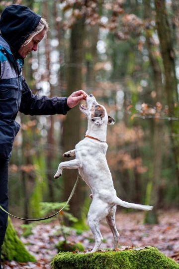 Jánošík je starší (cca 8-10 let) kříženec foxteriéra. Prostě teriér jak vyšitý - vzhledem i povahou a s přihlédnutím k věku. Je to nenáročný, procházkovy typ, který má na svůj věk stále mnoho energie. V kotci nic neničí a o samotě dokáže v klidu odpočívat. Nemá problém s manipulací - zvládá jak běžný provoz, takk i manipulaci na veterině. Rád se mazlí a má rád drbání. V tomto ohledu je k lidem kontaktní. Netušíme, jak a kde žil předtím - je ale možné, že to byl venkovní pes a nebude vědět, jak se chovat v bytě. Bude to pravděpodobně útěkář, když dostane možnost. K dětem se u nás v útulku nechová nikterak problémově. Nedoporučujeme ho ke kočkám, je to lovec. Některé psy zvládá, k jiným se chová jako kohout na smetišti, který chce všem ukázat, kdo je vedoucí. Případné soužití s jiným psem bude nutno nejdříve ozkoušet.