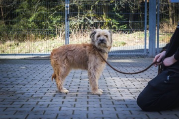 Kačenka je kříženec menšího/středního vzrůstu (váží 11 kg). Je jí údajně osm let, ale myslíme si, že by mohla být mladší. Zpočátku je velmi nejistá z nových situací a lidí, ale po chvíli se ukáže jako mazlivá fenka. Téměř nic neumí, ale je přátelská, kontaktní, umí chodit na vodítku a je čistotná. Přišla k nám spolu s dalšími pejsky, je tedy na přítomnost dalších psů zvyklá.