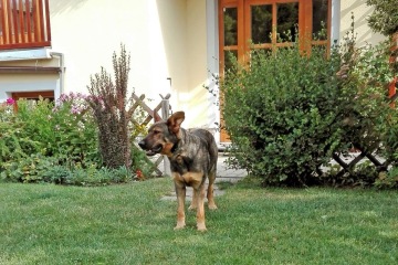 Hlavně Vám chceme poděkovat, protože Klaudie je velmi milá, přítulná a učenlivá. Pravidelně cvičíme a snad ji to i baví. Akorát malé pejsky, malé i velké feny a kočky nesnáší. Víme o tom, podle toho se chováme a podle toho s ní pracujeme. Klaudie je velký 'žravec'. V prvním měsíci měla neustále hlad, nyní je to už lepší. Hezky nám zesílila a dokonce se i doslova vybarvila. Byla vlkošedá a nyní je černozlatá. Je to zřejmě kvalitnějším jídlem.