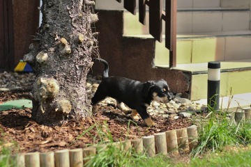 Konopníková se narodila 1.4.2013 a jedná se, z matčiny strany, o křížence baseta. Roste pěkně do délky a drží si "nízký podvozek". V dospělosti předpokládáme, že nebude větší než její matka. Takže se bude jednat o psa střední velikosti.