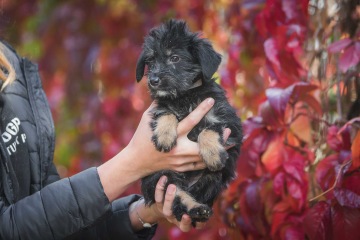 Jedná se o křížence všeho možné, nejvíce připomínající střapaté psy s rysy knírače. V dospělosti očekáváme střední vzrůst (10-20 kg). U nás si prošel prvotní péčí, odstraněním všech parazitů a začal se krásně rozkrmovat. Neumí vůbec, ale vůbec nic.