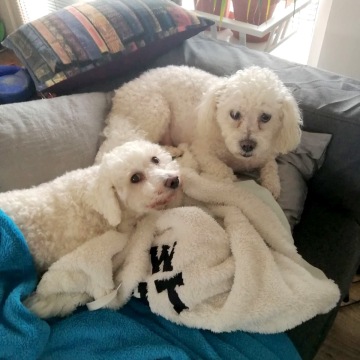 Dobrý den, Sofinka – Kreveta se má moc dobře, už byla u kadeřnice a zvládla to v pohodě, ale samozřejmě že byla ze začátku vykulená.Minulý týden byla na čištění zubů, bohužel o půlku zubů přišla, měla těžký zánět a zuby odpadávaly samy při čištění ultrazvukem L.Dostala antibiotika, už má poslední dávky a je v pořádku.Na vodítku chodí bezvadně, pořád je takový bojítko, ale když jde o psí pochoutky tak v té naší smečce se umí pěkně prosadit.Na fotce je s Matýskem – Sofinka je vlevo. Matese má moc ráda a hodně je u něj, Tedýska úplně nevyhledává, on je starý vztekloun.Hoví si na mikině dcery. Mikina není z bišoních kůží i když tak vypadá :).Sofinka je podle mě ta nejhezčí psí holčička kterou jsem kdy viděla.