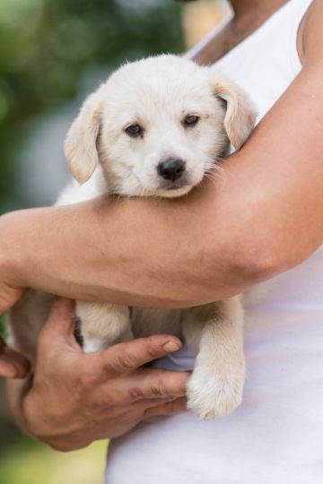 Zpočátku je nejistý a ustrašený, ale rozkouká se za pár minut a pak chdí za člověkem jako ocásek a zkoumá svět. Je o něco sebevědomější, než jeho sestřička, ale taktéž potřebuje poznat svět v dobrém světle, aby nabral více jistoty a sebevědomí.