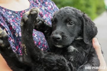 Kulík je dvouměsíční štěně, kříženec pravděpodobně curly coated retrívra. V dospělosti je tedy předpokládána velikost nad 20 kg.
