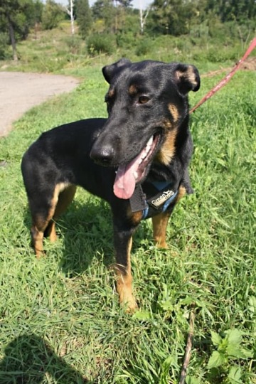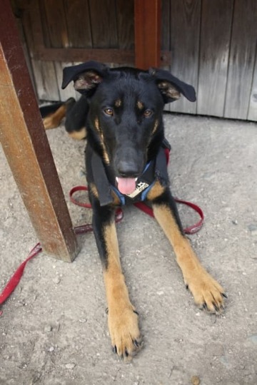 Kyra je fenka křížence ovčáka a dobrmana. Nedorostla však velikostně ani jedno z těchto plemen.