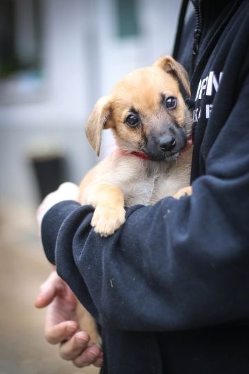 Dvouměsíční veselé štěně. V jejích předcích najdete křížence až do x-té generace, nelze v něm pořádně najít, jakou radu by její vzhled připomínal.