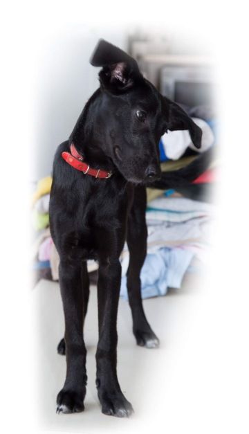 Je to správný voříšek (údajně kříženec labradora, ale o tom nejsme teda vůbec přesvědčeni:). V dospělosti bude střední velikosti. V tuto chvíli váží 6 kg.