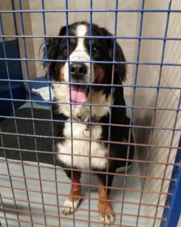 Fenka nalezená na silnici ulice Pražská, Kouřim (okr. Kolín) dne 27.10.2017. Nemá čip, na sobě měla obojek a ovázanou nohu. Pravděpodobně hárá.