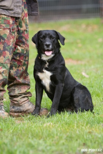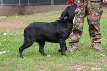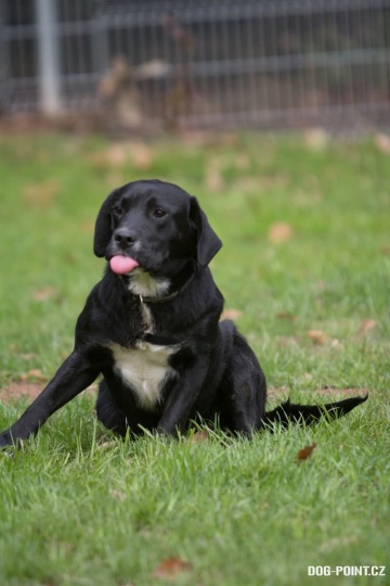 Lída (jak jsme fenku pojmenovali) je mladá fenka, odhadem 2 (či spíše méně) roky stará. Je to kříženka labradora, černá s výraznou bílou náprsenkou. Povahou je to klasický labrador - kamarádská, veselá, hravá a přítulná. Moc toho neumí, je rozlítaná, ale za odměnu se postaví třeba na hlavu:). Bude skvělý společník i do bytu - má hygienické návyky.