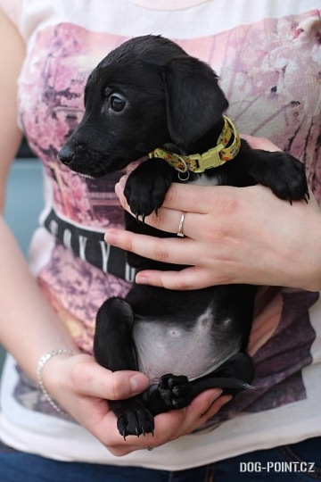 Lisa je dvouměsíční kříženec menšího vzrůstu. V jejích předcích mohl být možná jezevčík, špic, kokršpaněl - ale to jen tipujeme. Patří mezi větší ze sourozenců - při vážení na příjmu měla 1,6 kg. Předpokládáme tedy, že v dospělosti to bude spíše menší pes do deseti kilo.
