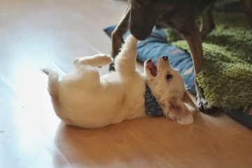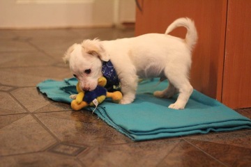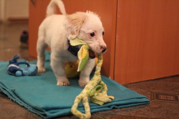 Loupežník je téměř tříměsíční štěně, kříženec - těžko odhadnou čeho. Avšak podle krátkých nohou a velkého množství energie předpokládáme, že by zde mohl být jack russel a dle kudrnatých uší možná i kokršpaněl. Každopádně se jedná o pejska, který v dospělosti nebude příliš velký. Nyní váží 3,5 kila, předpokládáme tedy, že více jak 15 kg v dospělosti mít nebude, spíše méně.