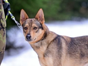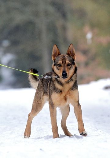 Luki je zhruba rok a půl starý kříženec německého ovčáka a československého vlčáka (v bůhví které generaci). Vzrůstově je ale střední, po kolena - nedosahuje velikosti ani jednoho z těchto plemen a více už ani neporoste.