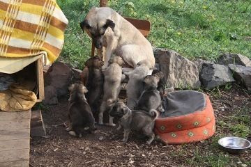 Majda je mladá fenečka, do 2 let. Je to střední kříženec ovčáka s velmi zajímavým zbarvením, které po ní někteří její potomci zdědili. Majda je mazlivá, starostlivá, ale zároveň velmi svá a velmi miluje balónky!:) V tuto chvíli stále ještě kojí, adopce bude možná po odstavení štěňátek, až se vše vrátí do normálních kolejí. Předpokládaná možnost odběru je od konce května. Více o Majdě a prccích se můžete dočíst zde : http://dog-point.cz/node/18