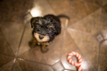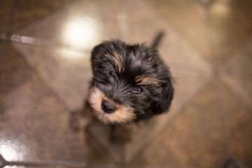 Malá je dvouměsíční kříženka jorkšíra a jezevčíka - je nejvíce hrubosrstá ze všech sourozenců a na to, že je to fenka, je také největší. V dospělosti předpokládán vzrůst do deseti kilo.