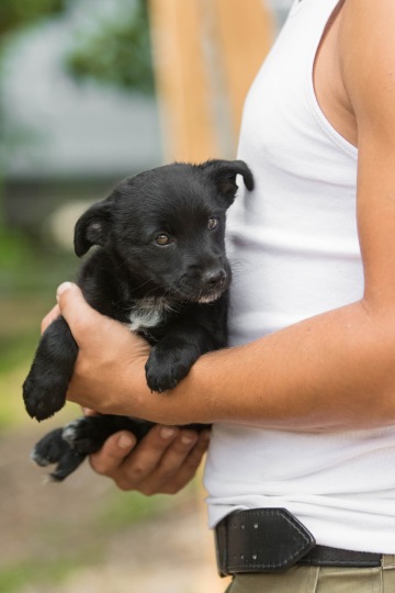 Dvouměsíční něžná štěněcí holčička, která potřebuje nabrat sebevědomí. Bude ráda hýčkána.