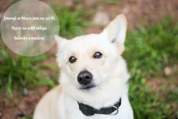 Max, balónky milující, pro pomazlení na hlavu se stavějící, čtyřletý kříženec. Jak zjistí, že mu neublížíte a rozumíte mu, oddá se vám. Maxova specialita je nošení vodítka, když se má jít venčit.