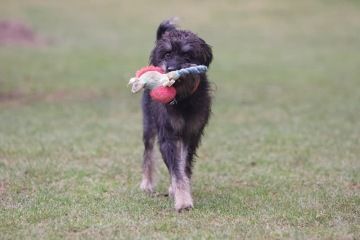Moc rád si hraje s hračkami. Byl zvyklý na pobyt v bytě.