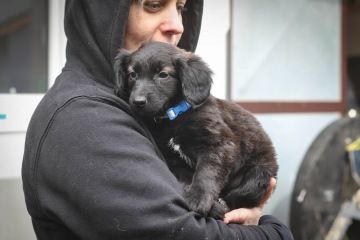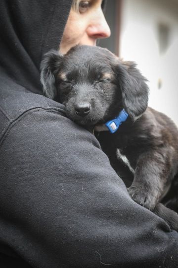Dvouměsíční kříženec voříška, voříška a...voříška :) V dospělosti předpokládáme velikost cca po kolena (pro představu třeba velikost kokršpaněla). Aktuálně váží kolem 2,5 kg. Vyrůstala v přitomnosti dětí a jiných psů.