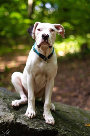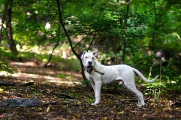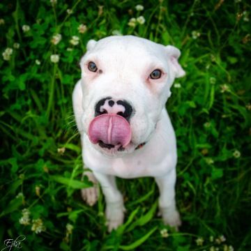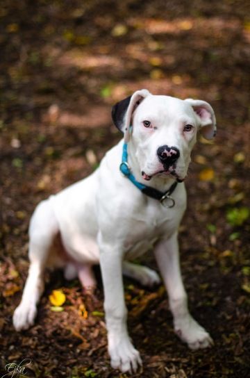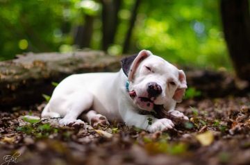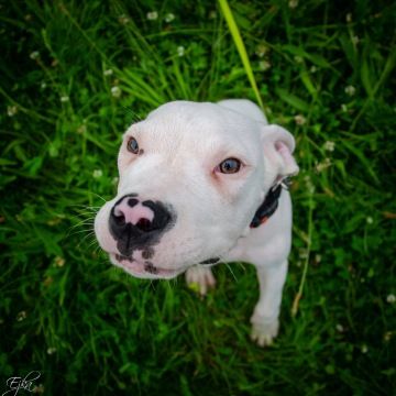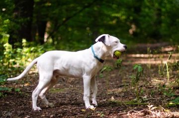 Mikro je štěně argentinské dogy. Pochází z kauzy odebraných dog.