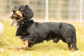 Monty na nízkém podvozku. Prostě dlouhosrstý jezevčičí kluk kompaktní velikosti.