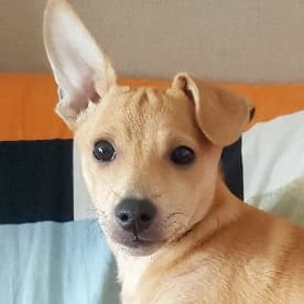 Dobrý den,posílám fotku Mumínka. Říkáme mu Mumík. Je to šikovný pes. Už umí sedni. Ještě občas udělá doma loužičku, ale to se naučí. Už má za sebou očkování a odčervení. Spí s námi v posteli, docela často obmotaný jako šála. Máme z něho radost. Děkuji a přeji vám další spokojené psíky u nových páníčků.