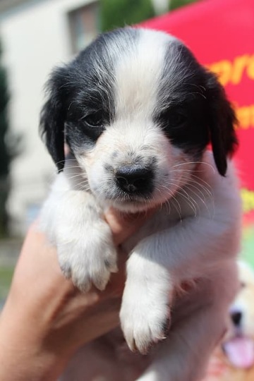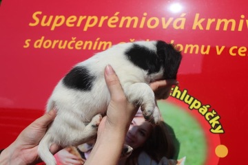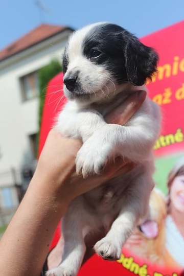 Mumínek je 6-7 týdenní mrněcí kluk. Mamina je kříženec menšího/středního vzrůstu viz. fotografie níže. V dospělosti je předpokládaná menší střední velikost (cca jako kokršpaněl).
