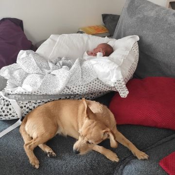 zdravíme vás a posíláme pár fotek Jessinky (Nessie). Jessinka je čím dál tím víc úžasná, v červnu se nám narodila dcerka a ač jsme předpokládali, že Jessinka nového člena rodiny přijme dobře, předčila naše očekávání a je opravdu úžasná! Je to takový její bodyguard a "ochránce" a nechá si toho od ní hodně líbit (vždy pod naším dozorem). Takže teď máme doma dva úžasňáky.