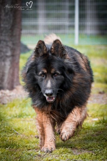 Niko je zhruba pětiletý, dlouhosrstý kříženec německého ovčáka. Možná by nepůsobil tak mohutně, kdyby neměl tak neuvěřitelně hustý a načechraný kožich, který úplně vybízí k tomu, abyste ho pořád mazlili a vískali :)