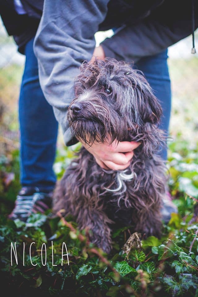 Nikola je 7 kilo vážící kříženec pudlíka a něčeho s jemnou srstí (možná havanského psíka?). Odhadem mu nejsou více jak 2 roky, tipujeme spíš kolem jednoho roku. Od první chvíle je to obrovský mazel, je na něm vidět, že mu nebylo lidmi ubližováno, protože všem bez rozdílu bezmezně věří. Na vodítku netahá, v kotci neštěká, ani nemá tendence nic ničit. Celkově je to klidný a nenáročný pejsek, který bude dobrým společníkem jak v rodině s dětmi, tak i u starších lidí. Nemá tendence řešit jiné psy, stačí mu držet se v blízkosti člověka. Prostě ten "chovací" typ psa. Je to ideální pes i pro začátečníky.