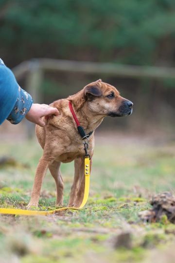 Zpočátku je z nových lidí a nového prostředí vyděšená - bude se snažit někam utéct, zalézt, nebýt s nikým a ničím v kontaktu. Její aklimatizace na nové prostředí je pomalejší, neočekávejte tedy pokrok v řádech dní, ale po našich současných zkušenostech spíše v řádu 3-4 týdnů. Olinka není primárně agresivní, pokud může, spíše se zdekuje pryč, nebo zmrzne. I když na nové podněty může reagovat pouštěním hrůzy. Je to prostě pejsek, který si z minulosti nese nějaké to trauma. Nebude to šampion na sport, ani výcvik, ale bude to ten typ pejska, který bude parťák na procházky (našlape toho dost! :) a pak na odpočinek na gauč k televizi.