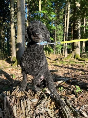 Při příjmu ji trápily zkažené zuby, přerostlé drápy a zacuchaná, plstnatá srst. Postupnou péčí se její stav výrazně zlepšil a ukázalo se, že Rosa je i přes svůj věk aktivní a kontaktní fenečka. Je asi nejvíce aktivní z celé party přijatých pudlích feneček. Má jednu skvělou superschopnost - umí se perfektně zubit! Na první pohled by to mohlo vypadat, že na vás hrozivě cení zuby, ale opak je pravdou - je to její způsob ,,úsměvu". A protože je to tak strašně srandovní, učíme jí tento trik na povel :)