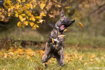 Ozzy je momentálně stále ještě vyhublý (avšak pomalu pěkně přibírá) a jeho minulost také není úplně známá. Co se týče psů, tak je vidět, že je hůře socializovaný - psů se nebojí, ale jeho komunikace s nimi má občas trhliny a dochází k drobným konfliktům. Projevuje i strach z mužů, je tedy možné, že měl s nimi v minulosti špatné zkušenosti. Jinak je to velmi aktivní štěně, určitě ne vhodné pro začátečníka. Bude ideální k domu se zahradou a trpělivým lidem s citem pro výcvik. Ozzy má velmi rád lidskou společnost a bude spokojený v přítomnosti lidí, samota na zahradě pro jeho psychiku není nejideálnější.