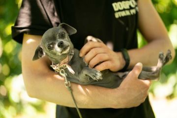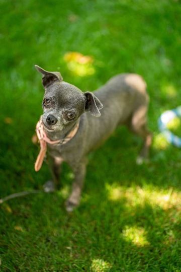 Pistácie je starší čivavka, má za sebou bůhví jakou minulost, ale nese si z ní minimálně jeden císařský řez. Zpočátku je k lidem nedůvěřivá, rychlé pohyby jí burcují k protiobraně zoubkama a hysterickým štěkotem. Když si na vás zvykne (u nás to bylo v řádu pár dní), je manipulace s ní už bezproblému a bude vyžadovat kontakt a mazlení. Neumí NIC.
