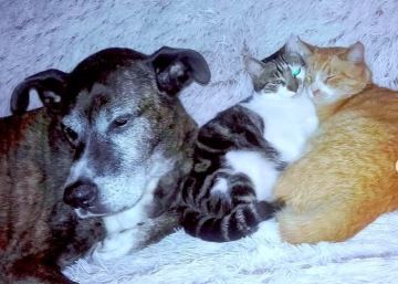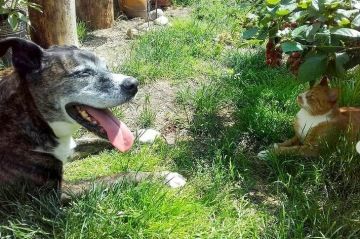 Portík je i ve 14. letech pořád veselý a plný energie, miluje jídlo a dlouhé procházky, měl operaci perianálního adenomu a vloni v létě si venku strhnul drápek až na kost, všechno jsme vyléčili. A od jara měl na pravém oku problém se třetím víčkem, sjela jsem s nim k dr. Beránkovi a po léčbě je očičko ok. A vloni v březnu byl na odstranění zubního kamene v narkóze. Po smrti Jessynky vloni 3.3. už má doma jen dvě čičiny ze Psího života.