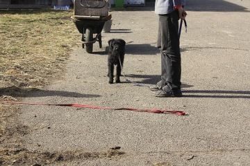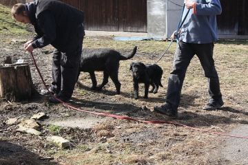 Prášek již pěkně chodí na vodítku, pokud kolem něj není příliš rušno, to se pak ještě bojí. S ostatními pejsky vychází naprosto perfektně a velmi mu pomáhá jejích přítomnost na jeho psychiku.