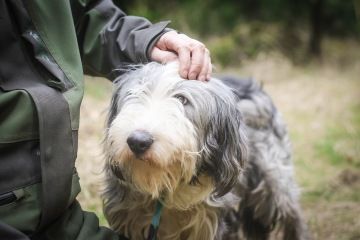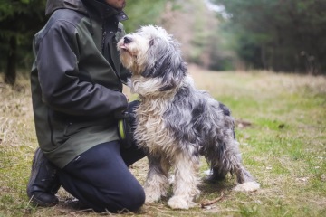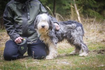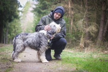 Něžný a mazlivý psí kluk se vzhledem bearded kolie.