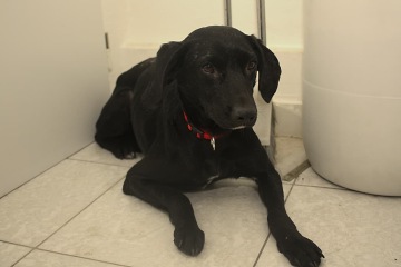 Rampa je krátkosrstý kříženec černé barvy s úzkou bílou naprsenkou. Je mu zhruba rok a půl, je ustrašený, ale jinak je moc hodný a dokonce i veterinární ošetření snášel dobře.