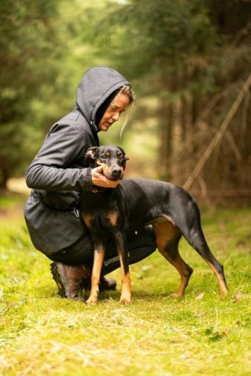 Regina je šestiletá dobrmaní fenka. Je drobnějšího vzrůstu (váží 22,5 kg).