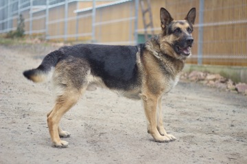 Rex je asi čtyřletý německý ovčák (nebo jeho velmi povedený kříženec). Je to velký (40 kg) a vyrovnaný pes, který je na svůj věk klidný a nemá potřebu řádit jak černá ruka. Umí chodit na vodítku, zná pár základních povelů. Miluje házení klacků - jak má klacek, soustředí se jen na něj a nemá tendence třebas honit zvěř. K fenám přátelský, ke psům odměřený. K lidem velmi přátelský.