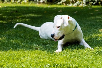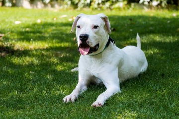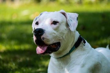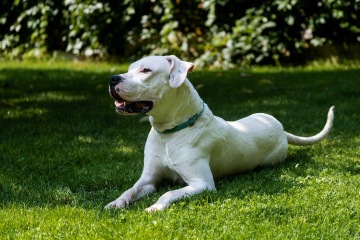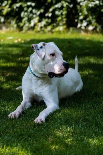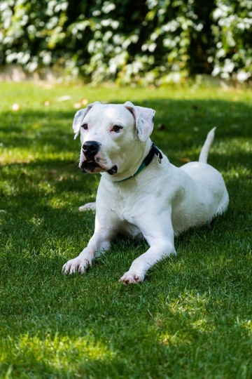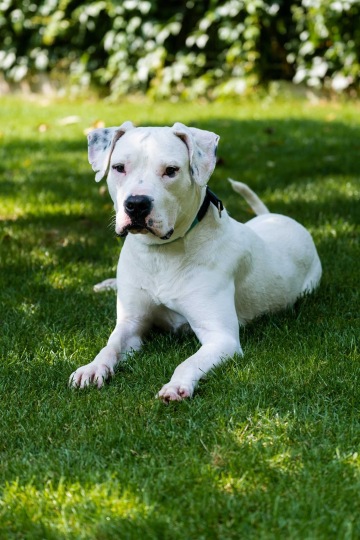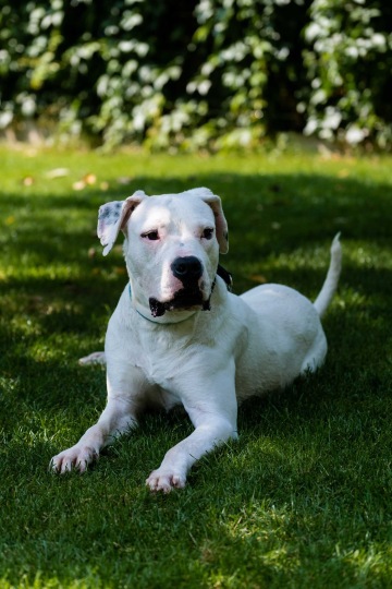 Rezo je mladý pes argentinské dogy. Pochází z kauzy odebraných dog.