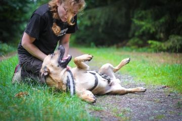 Ríša je asi roční pejsek, kříženec kolem 20 kg. Možná v něm bude nějaký belgovčák a pitbulík. Má rád akci (výlety, cvičení, mozkocvičení, procházky), ale dokáže i v klidu ležet a nechat se drbat. Na některé jiné psy se tváří přátelsky, na jiné ne, všeobecně ale s jinými psy vychází spíše dobře. Zvládá několik povelů, velmi dobře a ochotně se učí a je čistotný. Jezdí rád v autě. A pozor! Nemá problém dokonce se soužitím s kočkou v jednom bytě. Na vodítku tedy tahá, ale to je věc odnaučitelná.
