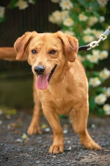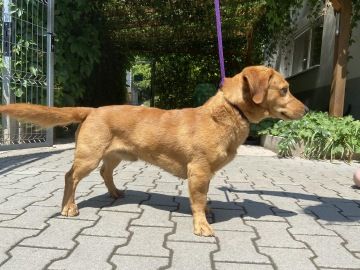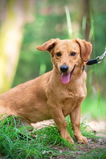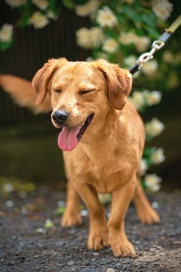 Rohlík je mladý psí kluk, odhadujeme kolem jednoho roku. Vypadá jak kříženec jezevčíka a retrívra, váhy 17 kg.