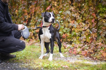 Saam je pětiletý stafordšírský teriér. Dostal se k nám spolu se svým bráchou Stanem přímo od majitele, z rodinných důvodů. K lidem je přátelský, nekonfliktní. K jiným psům není nikterak agresivní a to prozatím ani j jiným psím samcům, nicméně v případě soužití s jiným psem je nutno to individuálně ozkoušet. Pravděpodobně na to má velký vliv, že vyrůstal se svým psím bráchou. Byl zvyklý celoročně na pobyt venku v kotci.