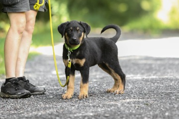 Santiago je dva měsíce starý kříženec velkých plemen. V jeho předcích se dají najít znaky rotvajlera a ovčáka (foto matky na konci, otec znám, ale není foto). Je to štěně, které vyrůstalo se svými sourozenci a matkou, má tedy dobrý základ pro socializaci se psy. Stejně tak má i s lidmi jen dobré zkušenost, takže se nadšeně vrhá ke komukoli. Je to hravé, aktivní, zvídavé a mazlivé štěně, které rozhodně nestrádalo, byť se narodilo fence od bezdomovců. Momentálně neumí nic, než si hrát a zlobit. Jako každé štěně potřebuje naprosto vše doučit.