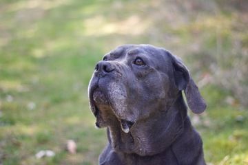 Sharp je čistokrevný cane corso. Je to rozvážný důchodce.