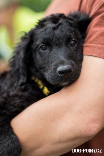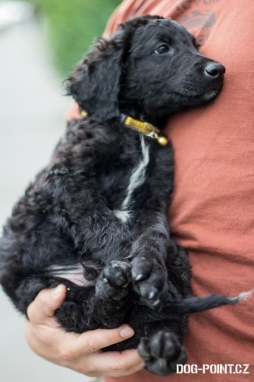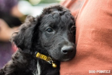 Je to aktivní a hravé štěně, zvyklé na společnost jiných psů. Je kontaktní k lidem. Jako každé štěně bude potřebovat naučit veškeré základy od domácí hygieny po slušné chování. Nenese si žádné výrazné trauma z předchozího života, má tedy dobré předpoklady vyrůst pod dobrým vedení ve fajnového společníka.
