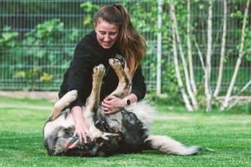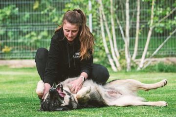 Je to velmi přátelská, kontaktní a mazlivá fenka. Má zájem o spolupráci a společné hry (hlavně ty přetahovací) s člověkem. Ráda si hraje s hračkami. Moc toho neumí, ale je velmi tvárná a vše se ráda doučí. Velmi ráda chodí na procházky, takže jako parťačka na výlety by byla ideální. Manipulace, ani ošetřování (včetně česání) není problém, vše zvládá na jedničku. V kotci je čistotná, nic neničí (pouze v době hárání furt žužlala deku a odebírala z ní postupně kousíčky). O samotě není nikterak hlučná, štěká jen když chce pozornost a nebo upozorňuje na dění za plotem.