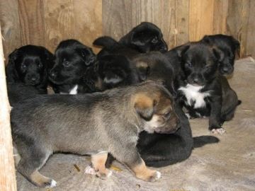 Štěňátka narozená 27.6.2012, kříženci. Mamina velmi milá a kontaktní fena - kříženec NO, foto ZDE. Otec neznámý.