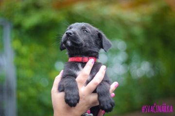 Dvouměsíční rarach v těle ani ne dvoukilového štěňátka. V dospělosti předpokládáme velikost kolem 10-15 kg. Neznáme ani jednoho z rodičů, tudíž co z ní vyroste, bude jedno velké překvapení.