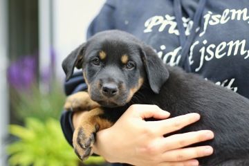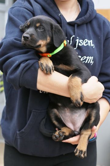 Sydney je dva měsíce starý kříženec velkých plemen. V jeho předcích se dají najít znaky rotvajlera a ovčáka (foto matky na konci, otec znám, ale není foto). Je to štěně, které vyrůstalo se svými sourozenci a matkou, má tedy dobrý základ pro socializaci se psy. Stejně tak má i s lidmi jen dobré zkušenost, takže se nadšeně vrhá ke komukoli. Je to hravé, aktivní, zvídavé a mazlivé štěně, které rozhodně nestrádalo, byť se narodilo fence od bezdomovců. Momentálně neumí nic, než si hrát a zlobit. Jako každé štěně potřebuje naprosto vše doučit.